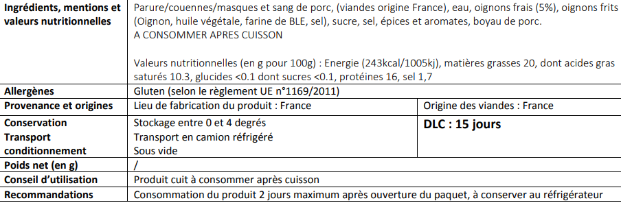 Boudin aux châtaignes, 1kg, 8.95€/kg
