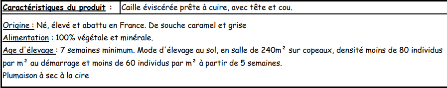 Cailles impériale, 250gr, x10, 13.80€/kg.