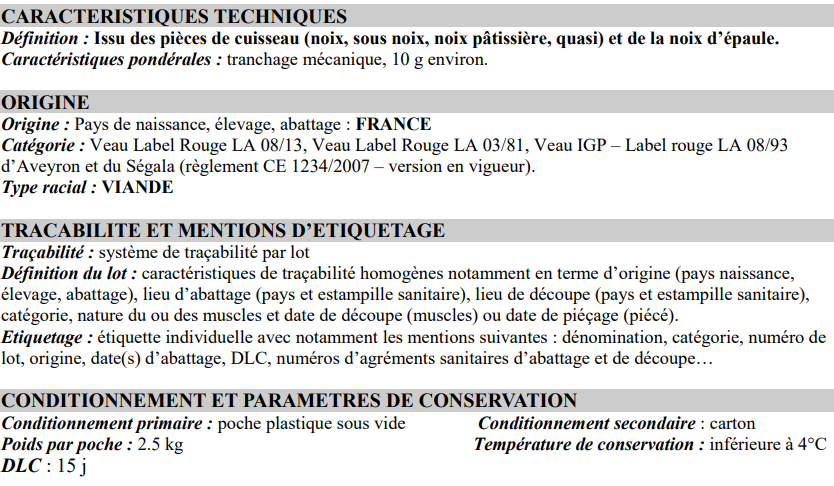 Emincé de veau Label rouge du Ségala, 2.5kg en 10gr, 23.62€/kg