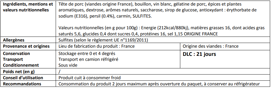 Pâté de tête persillé terrine, 1kg, 9.65€/kg.