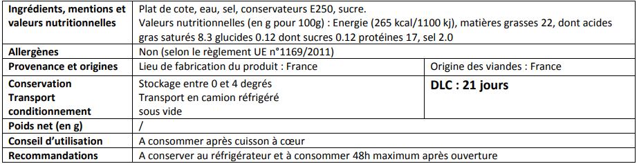 Plat de côtes salé, 1kg, 10.20€/kg.