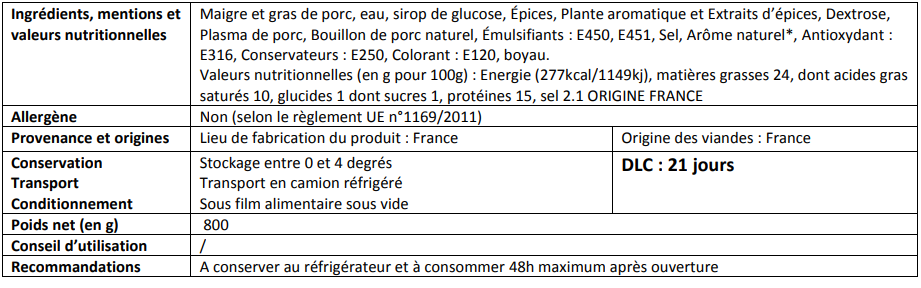 Saucisson ail, 800gr, 8.70€/kg.