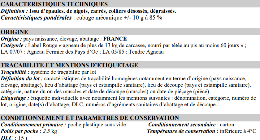 Sauté d'agneau fermier Label rouge Pays d'Oc, 2.5kg, 27.89€/kg