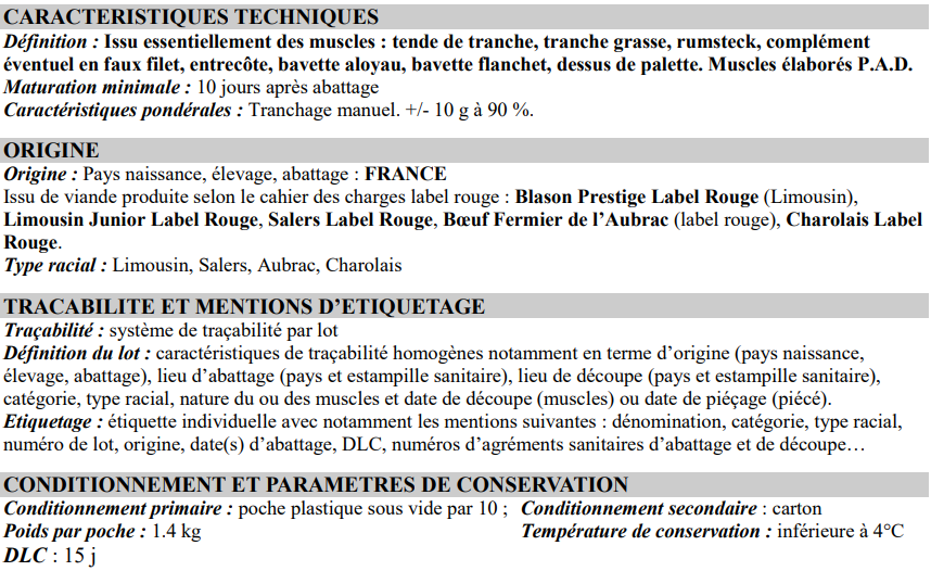 Steak de bœuf Label rouge, 10 x 140gr, 24.45€/kg