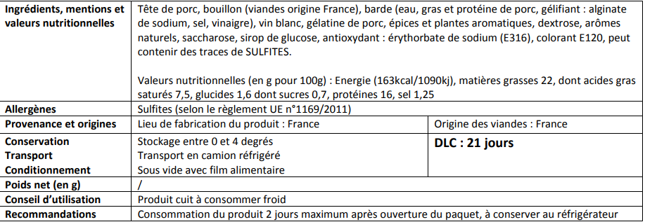 Tête roulée morceau, 500gr, 9.95€/kg