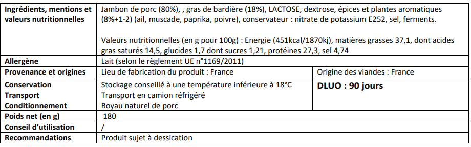 saucisson sec pur porc court, 200gr, 24.85€/kg.